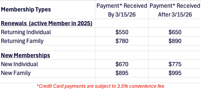 Membership Plan: 2026 RENEWAL FAMILY MEMBERSHIP